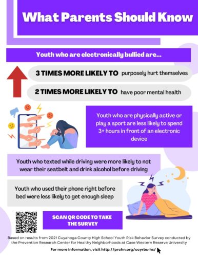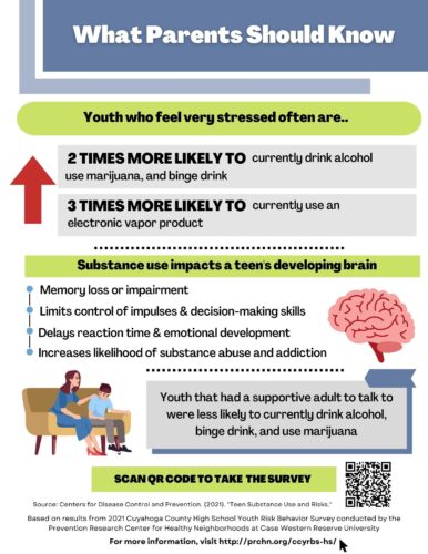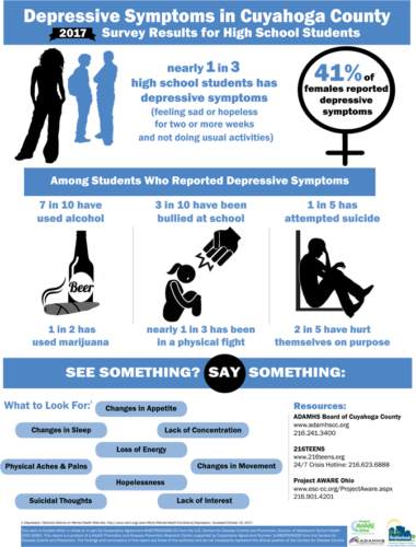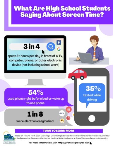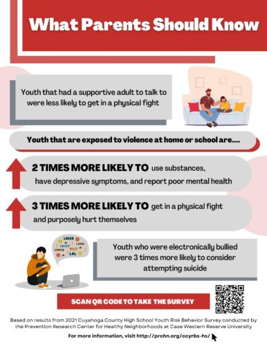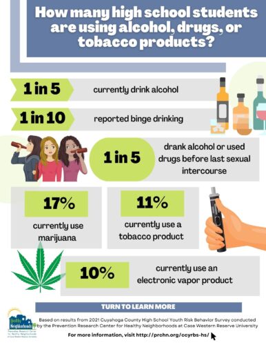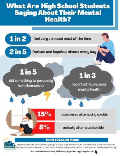 Infographics AllMental Health Obesity and Weight ControlSubstance Use Sexual BehaviorsUnintentional Injuries Violence Related BehaviorsTechnology What Parents Should Know: Technology Use 2022 What are HS Students saying about screen time? 2022 What Parents Should Know: Substance Use 2022 How many HS students are using alcohol, drugs, or tobacco products?2022 What Parents Should Know: Violence 2022 What are HS Students saying about Violence? 2022 Support Can Help: Mental Health 2022 What are HS Students saying about their Mental Health?2022 Tobacco 21 in Cleveland 2019 Electronic Vapor Product Use 2019 Depressive Symptoms among LGB Youth 2019 When It Comes to Sex . . . Teens in Cuyahoga County2018 Suicide Ideation and Attempts 2018 Depressive Symptoms in Cuyahoga County2018 Depressive Symptoms among Latino Students in Cuyahoga County (Spanish)2018